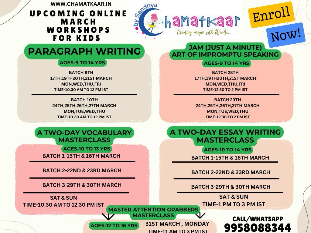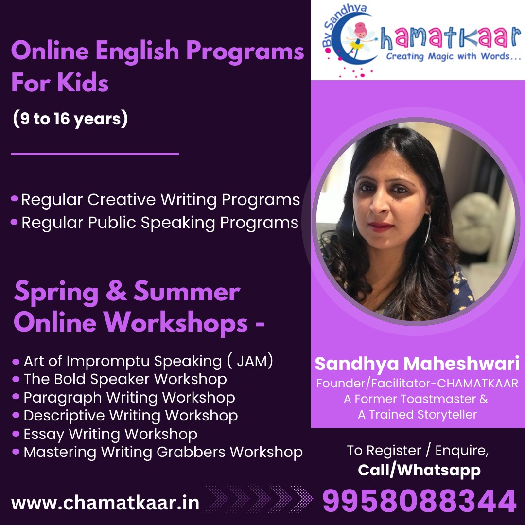 CHAMATKAAR offers regular engaging and transforming sessions and Masterclasses in English creative writing, vocabulary, and public speaking.